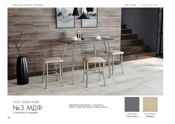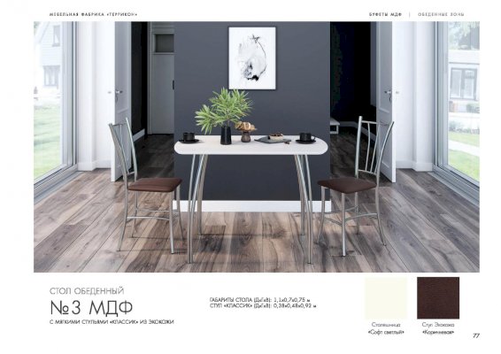 Стол обеденный №3 (Террикон) – товар доступен к покупке в интернет-магазине volgogradskiy-dommebeli.ru. Цена – 9 028 руб. без учета доставки. Стоимость дополнительных услуг и сроки получения мебели уточняйте у менеджера. Возможен безналичный расчет, оплата по карте на сайте.