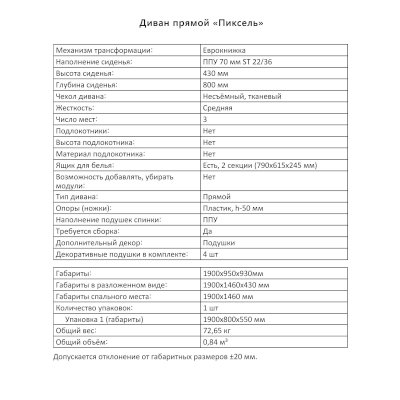 Диван Пиксель (Аквилон) – товар доступен к покупке в интернет-магазине volgogradskiy-dommebeli.ru. Цена – 30 317 руб. без учета доставки. Стоимость дополнительных услуг и сроки получения мебели уточняйте у менеджера. Возможен безналичный расчет, оплата по карте на сайте.