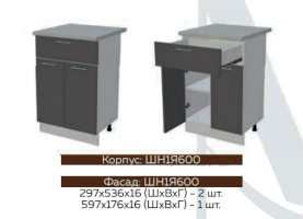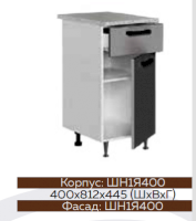 Глубина нижних шкафов без учета столешницы: 444 мм, с учетом столешницы 600 мм